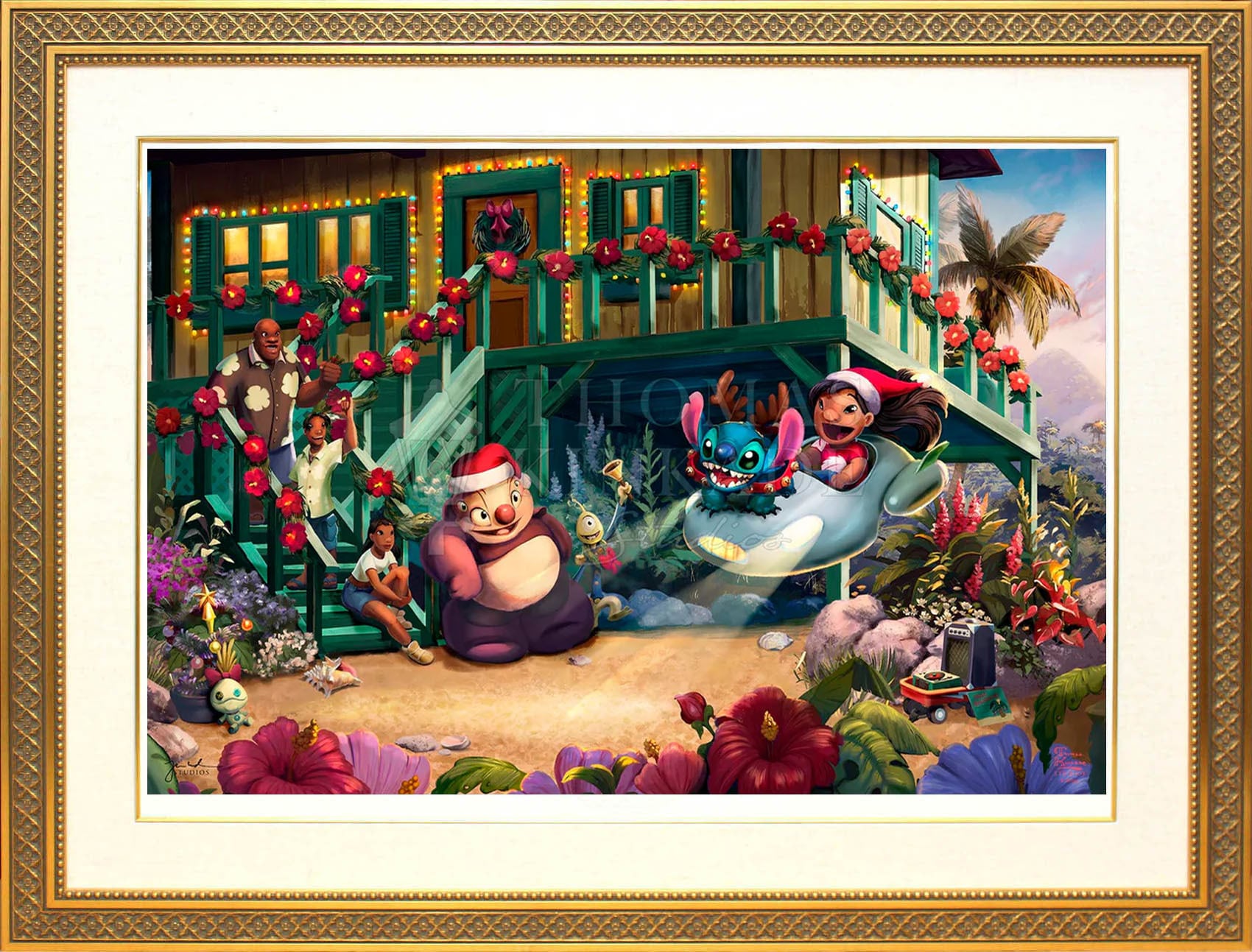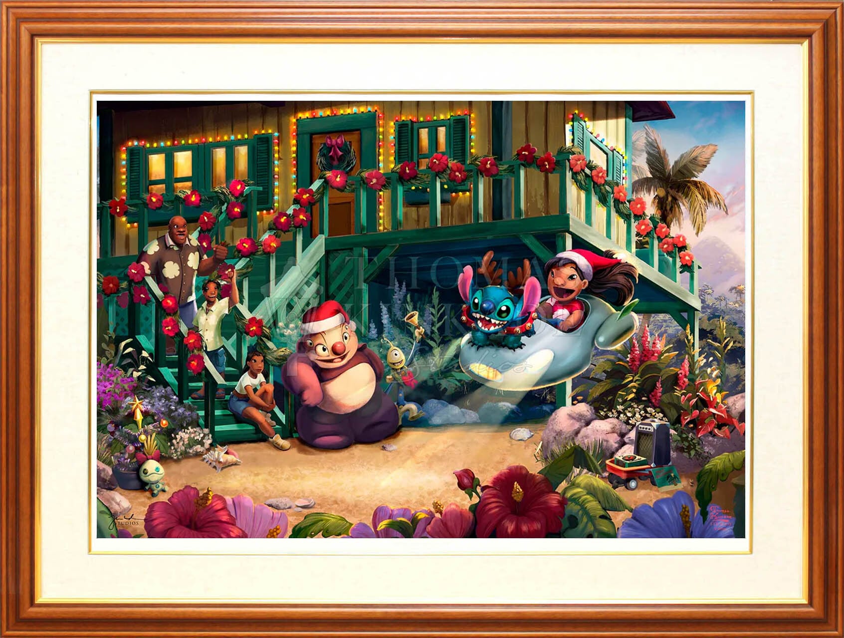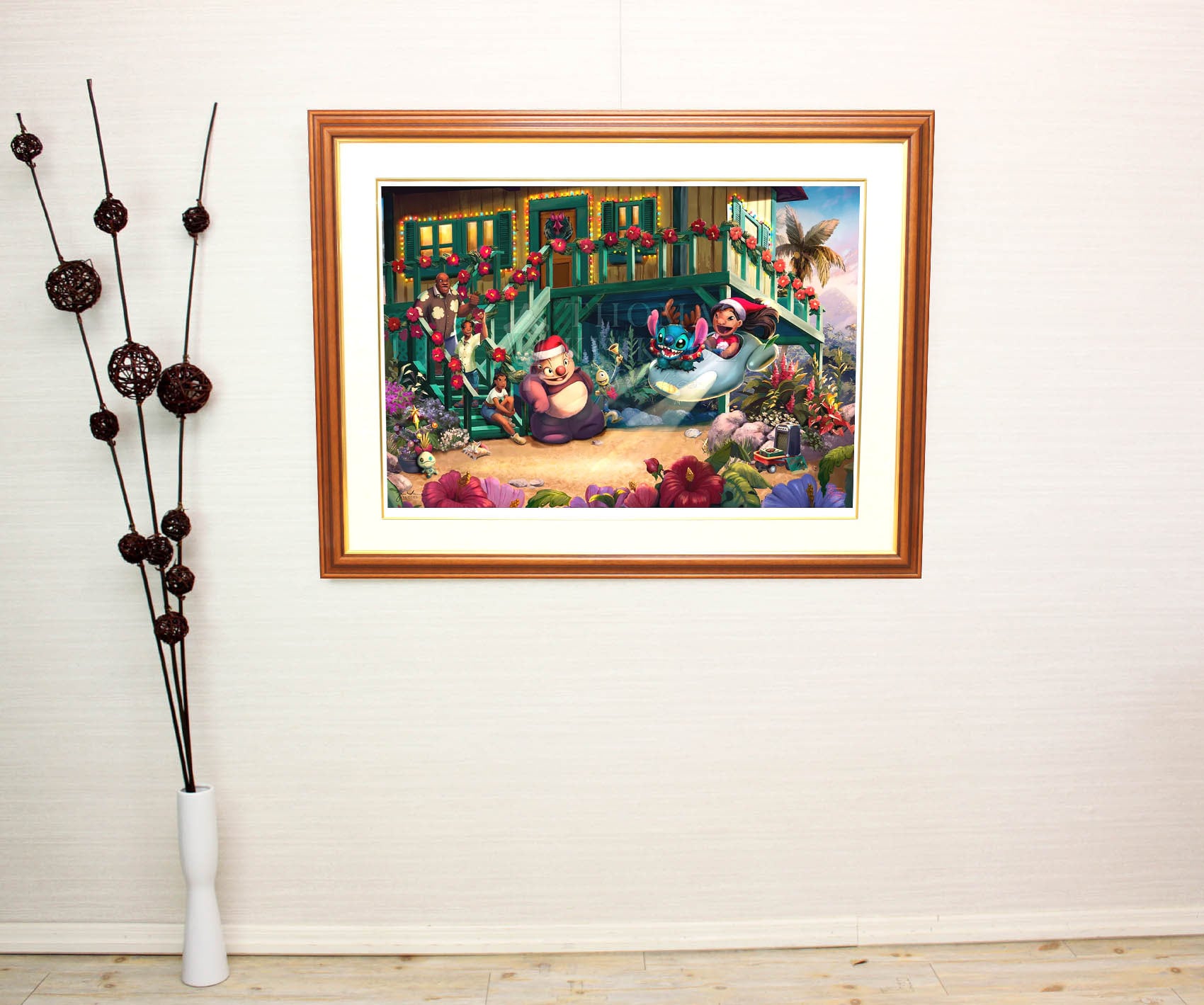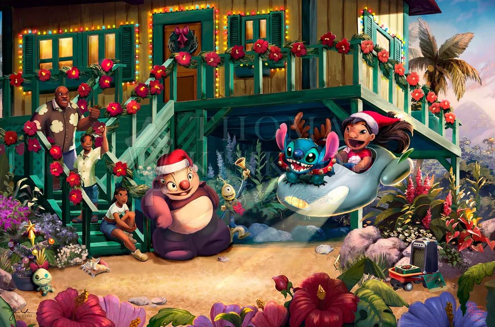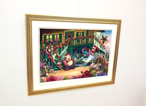 ディズニー絵画「リロ&スティッチ/アロハ クリスマス」作品証明書 展示用フック付ジークレ【インテリア】【アート】【Disney】【絵画インテリア】