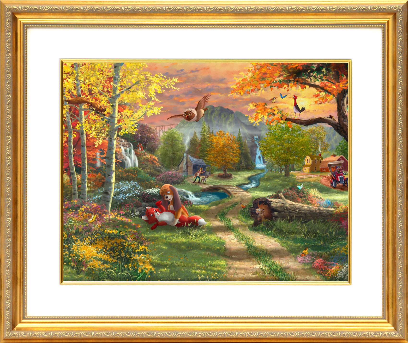ディズニー絵画「きつねと猟犬」額縁2種選択可 作品証明書 展示用フック付アートプリントポスター【インテリア】【Disney】【絵画インテリア】