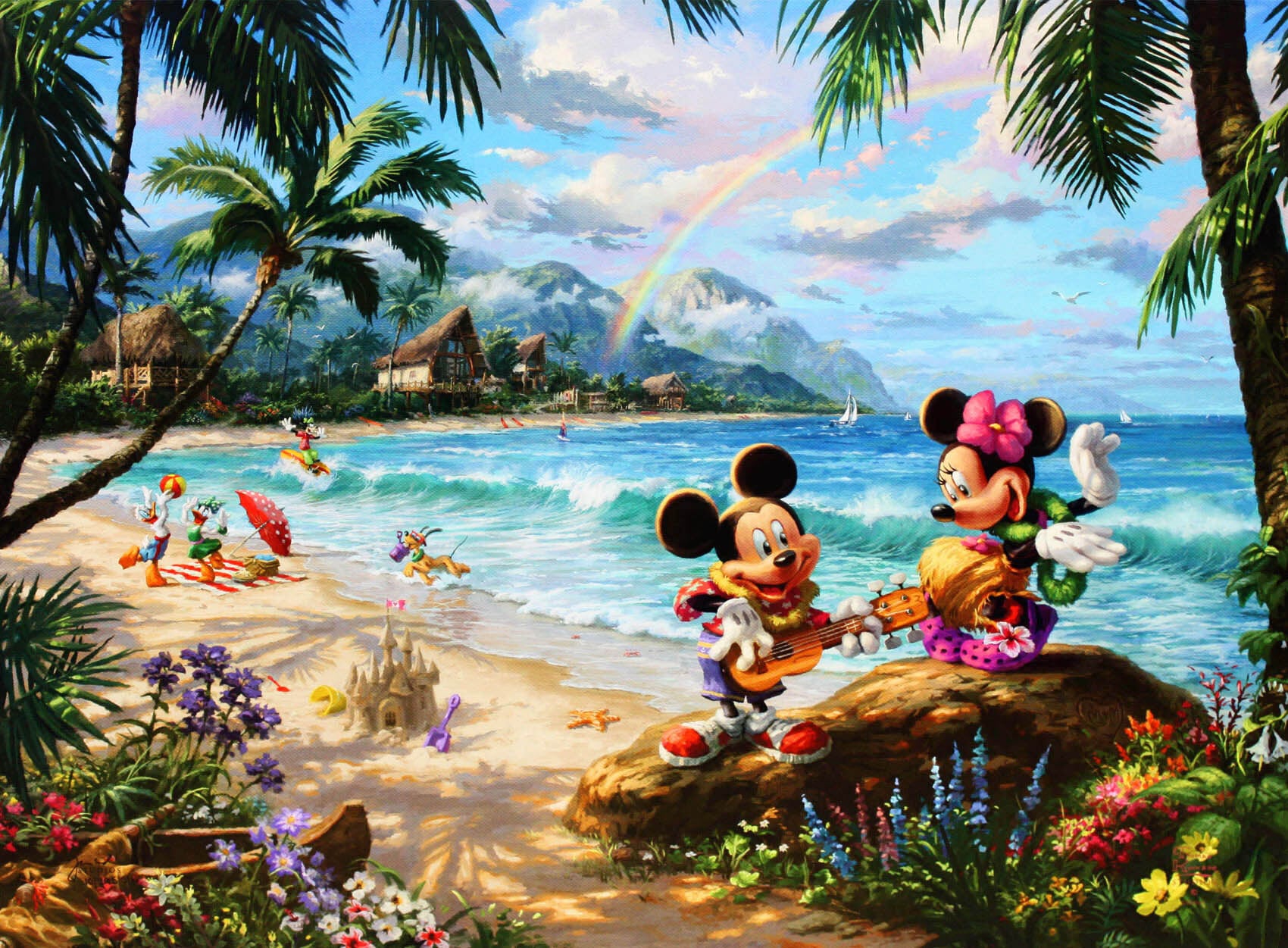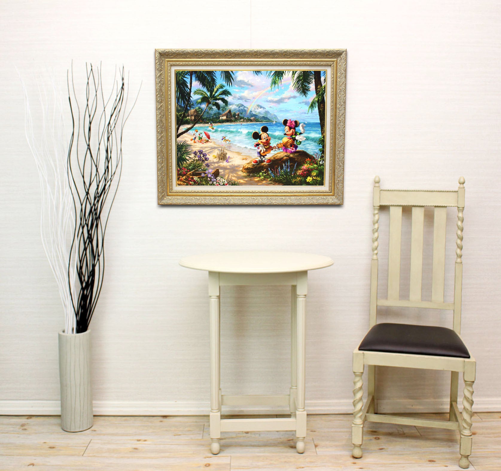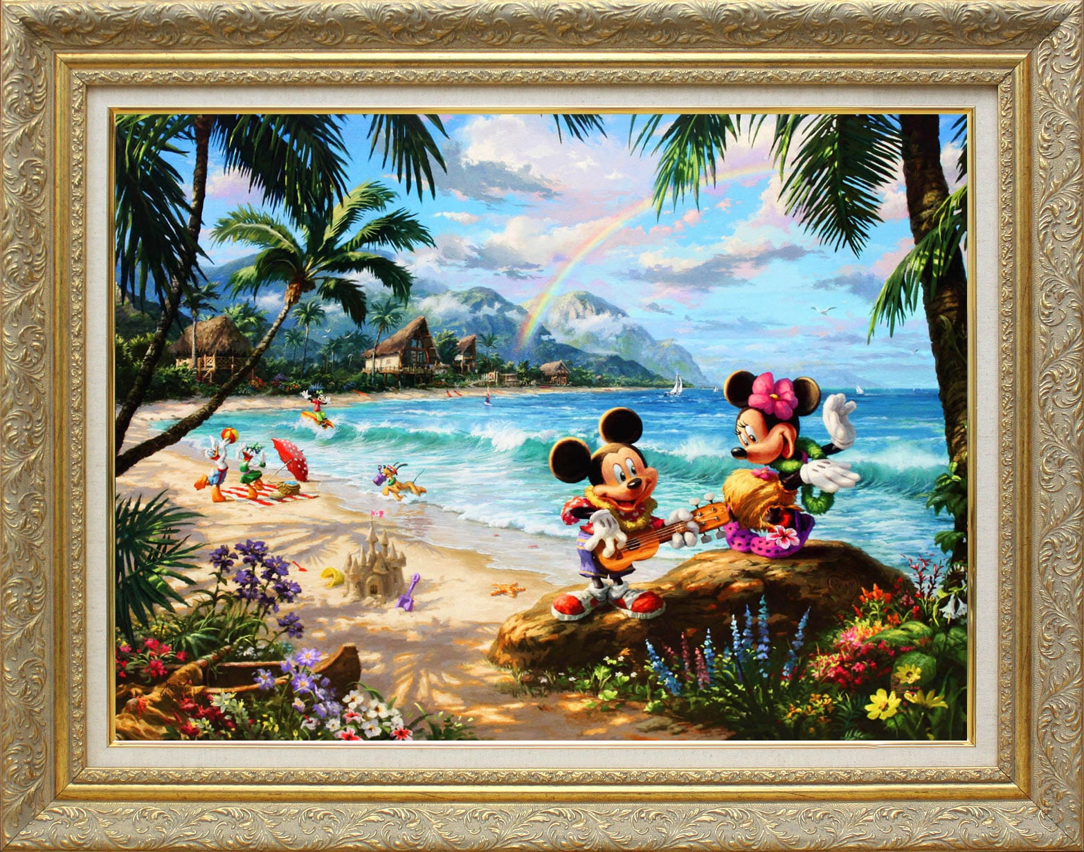 ディズニー絵画 トーマス キンケード「ミッキー&ミニー/イン ハワイ」作品証明書 展示用フック付限定キャンバスジークレ