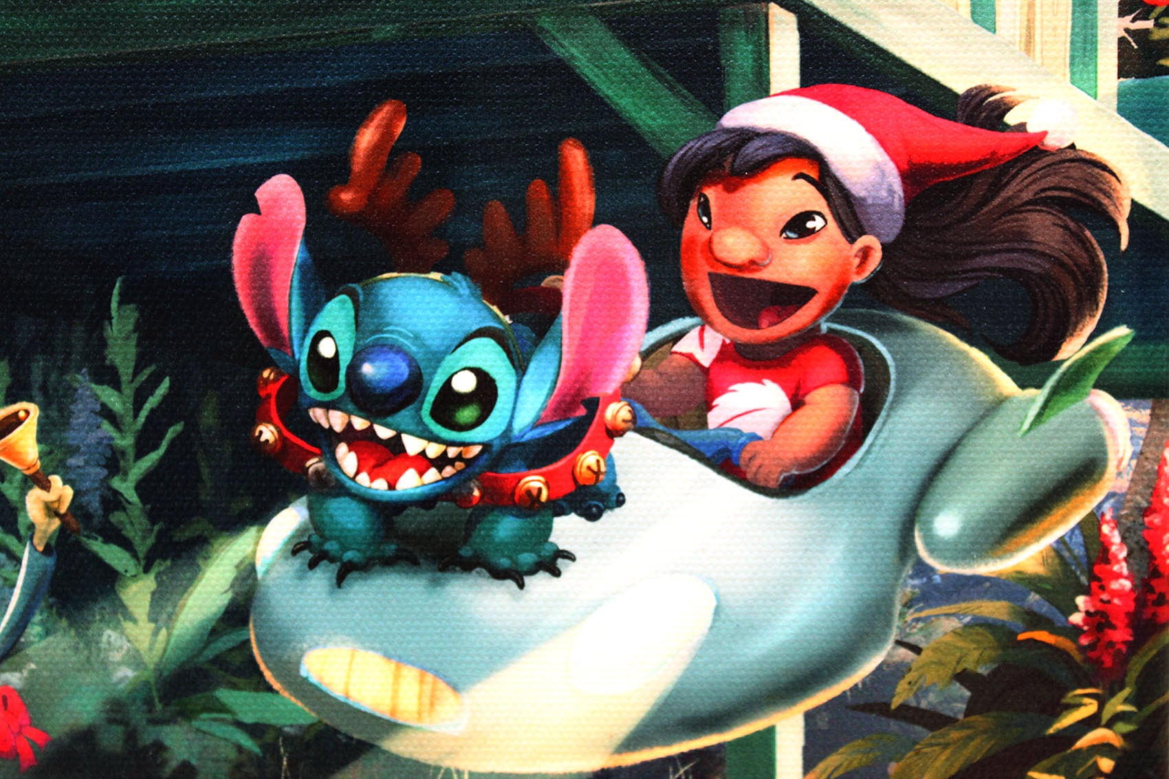 ディズニー絵画 リロ&スティッチ/アロハ クリスマス 展示用フック付 キャンバスジークレ