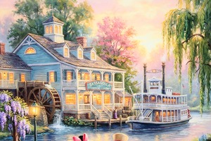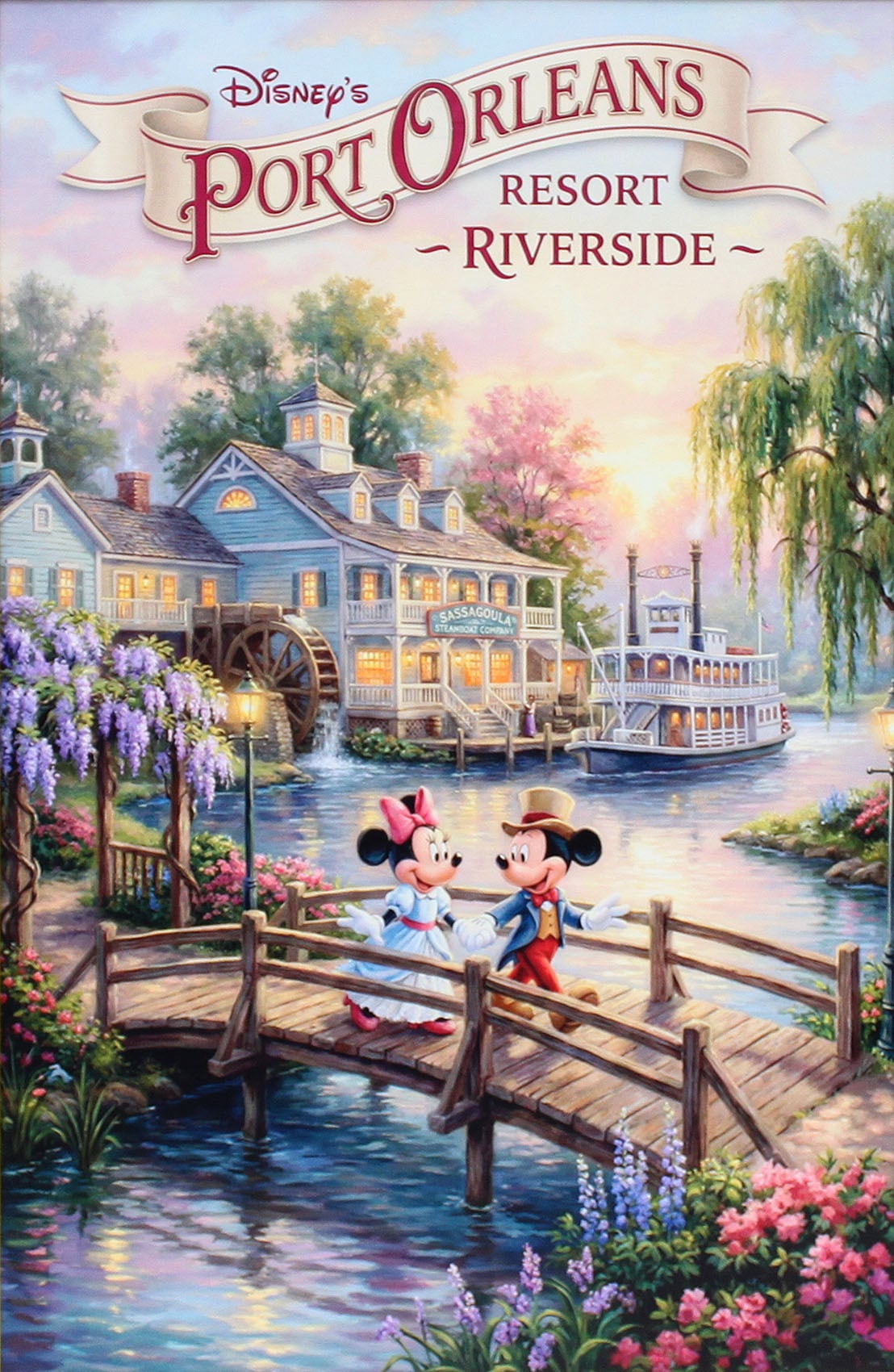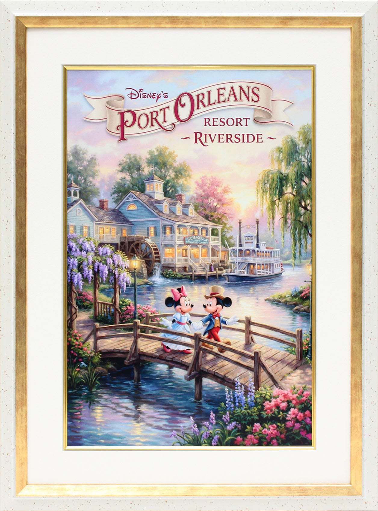 ディズニー ポスター「ミッキー&ミニー/ポートオーリンズ リゾート リバーサイド」展示用フック付額装ポスター