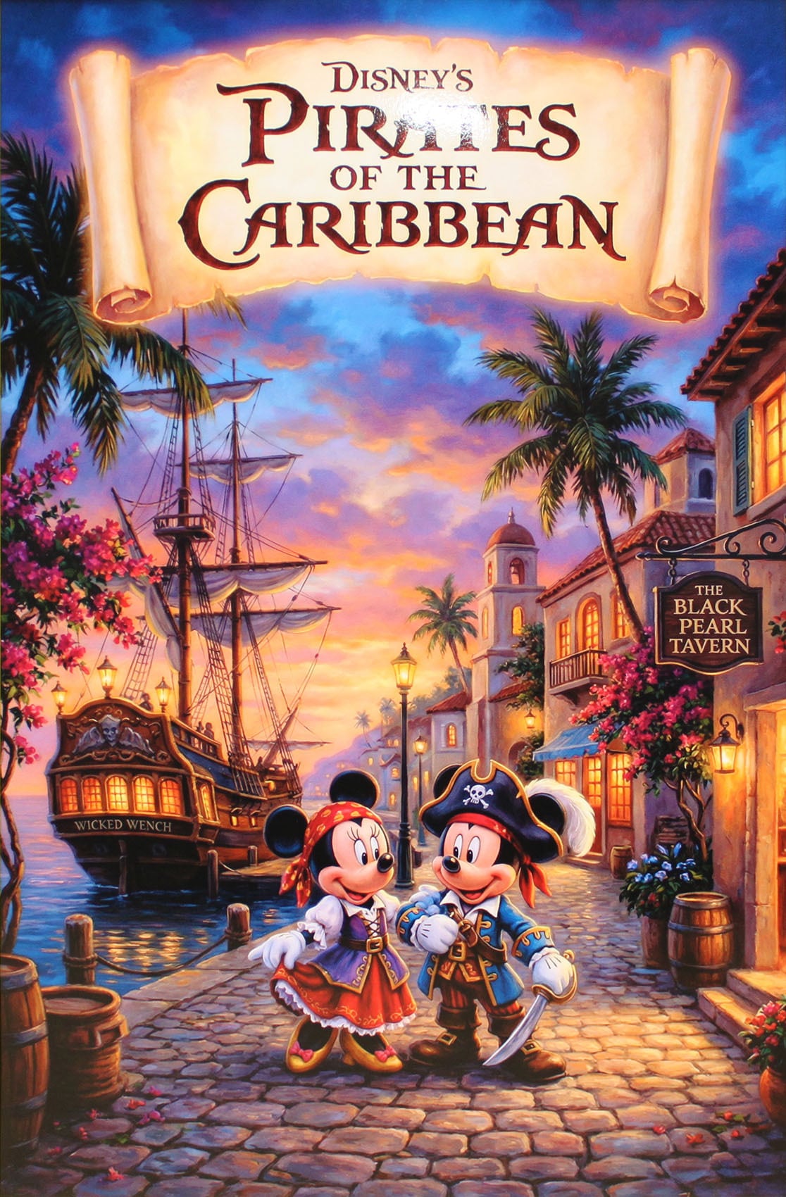 ディズニー ポスター「ミッキー&ミニー/パイレーツ オブ カリビアン ライド」展示用フック付額装ポスター