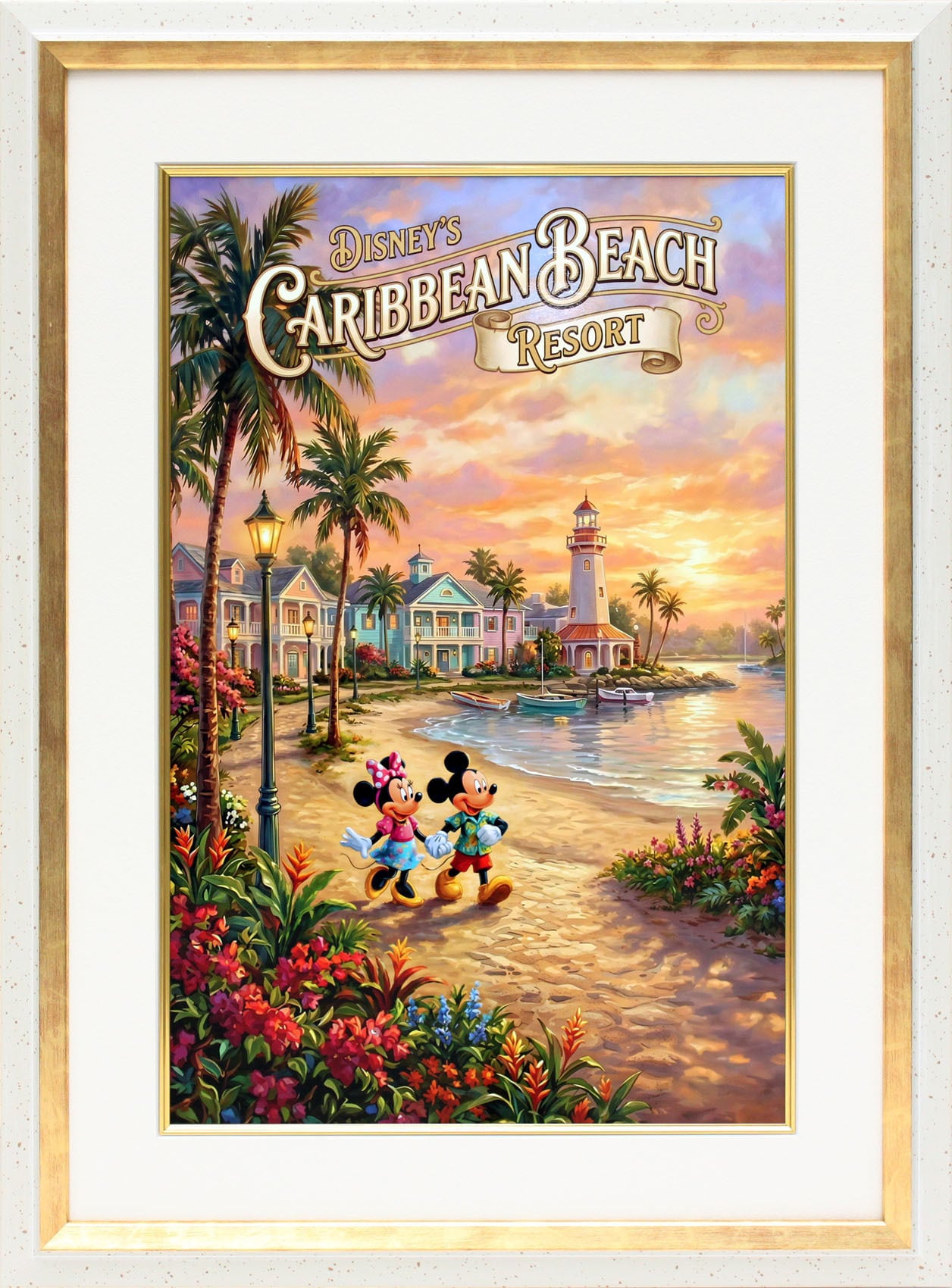 ディズニー ポスター「ミッキー&ミニー/カリビアン ビーチ リゾート」展示用フック付額装ポスター ディズニーリゾート