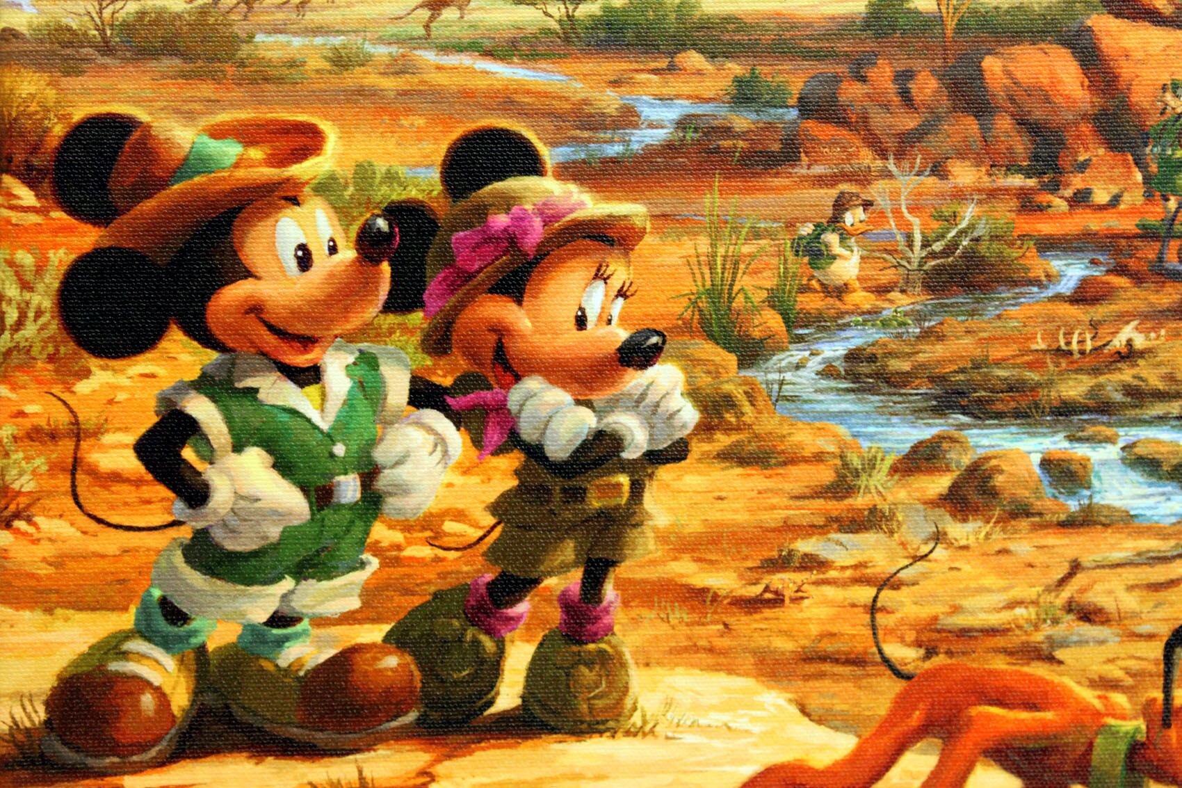 ディズニー絵画 額付き ミッキー&ミニー/イン ザ アウトバック 展示用フック付キャンバスジークレ