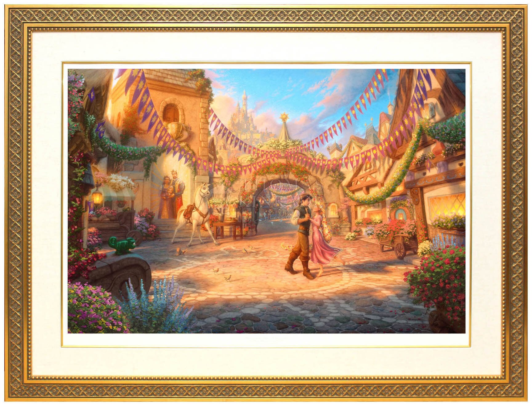 ディズニー絵画 塔の上のラプンツェル/ダンシング イン ザ サンライト コートヤード 作品証明書 展示用フック付ジークレ