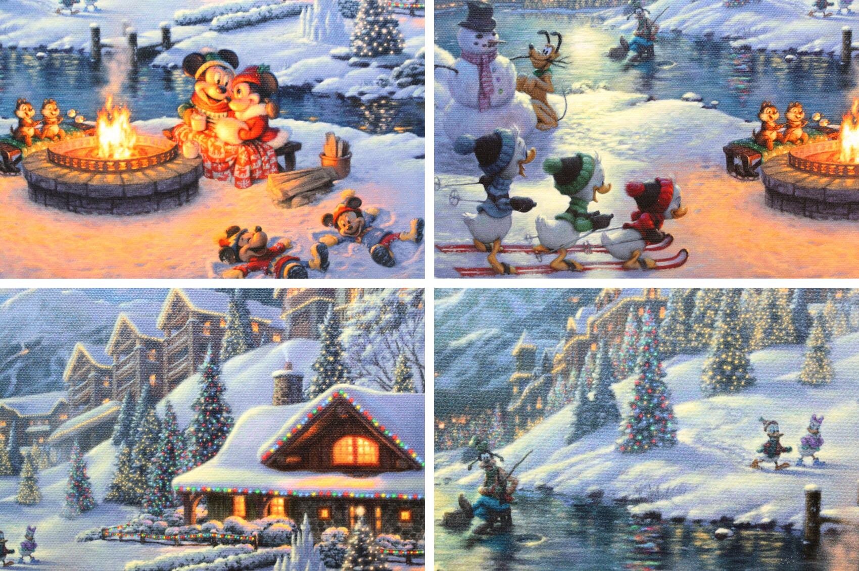ディズニー絵画 トーマス キンケード ミッキー&ミニー/クリスマス ロッジ キャンバスジークレ 版画 正規品 インテリア 展示用フック付 ギャラリーラップ