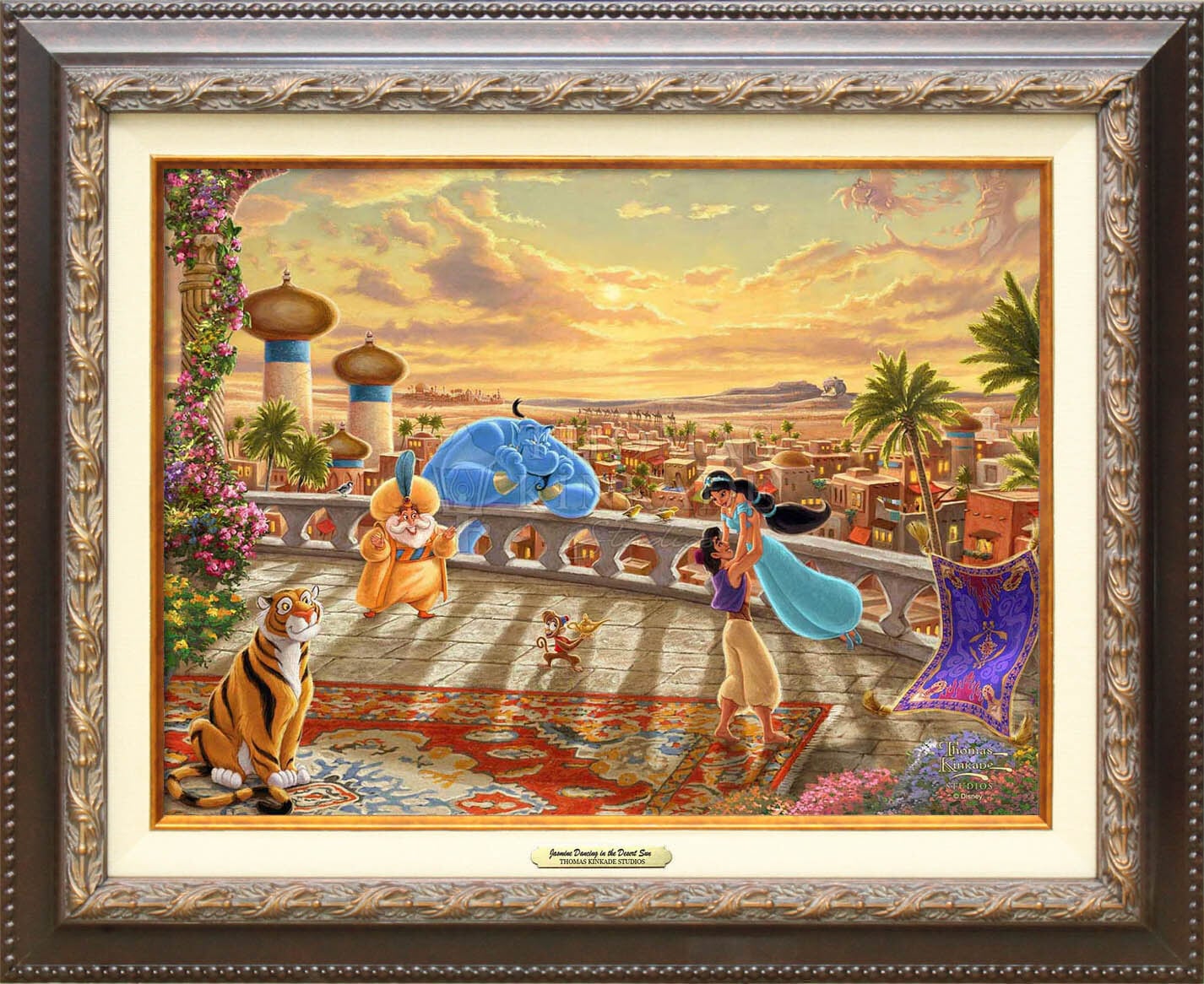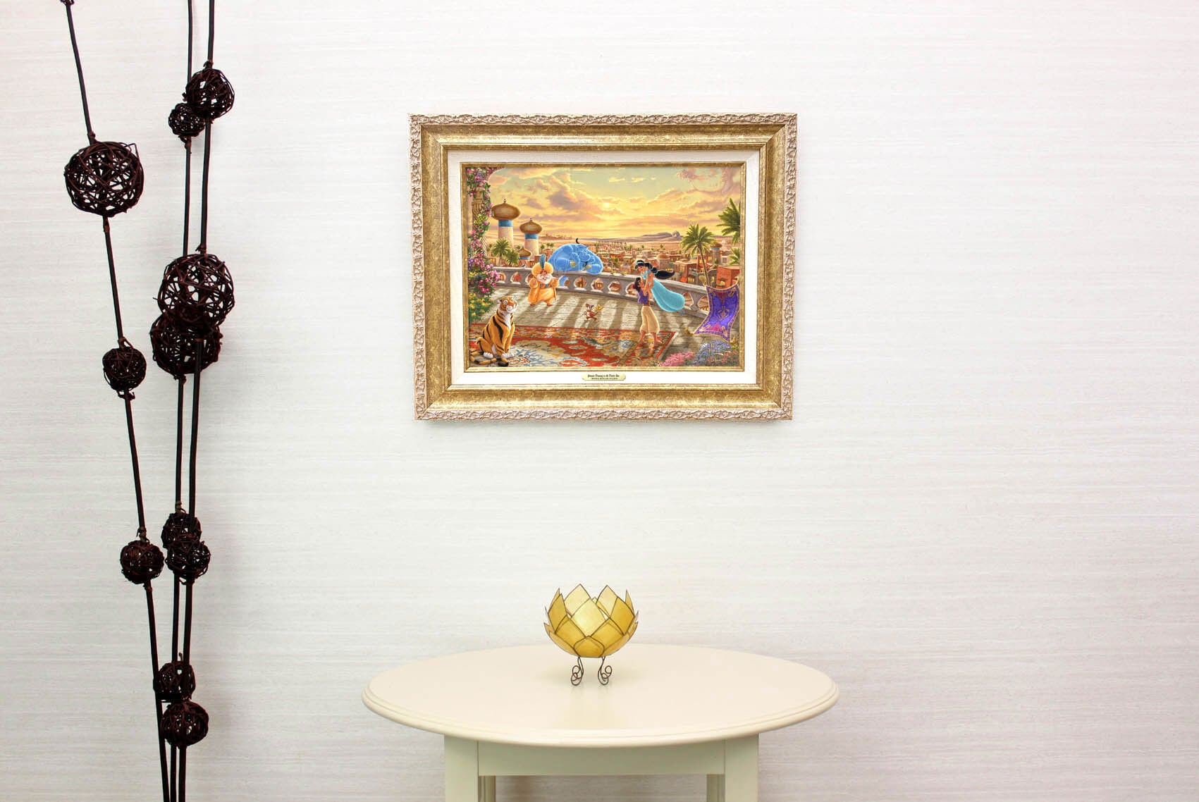 ディズニー絵画「アラジン/ジャスミン ダンシング イン ザ デザート サンセット」作品証明書 展示用フック付キャンバスジークレ