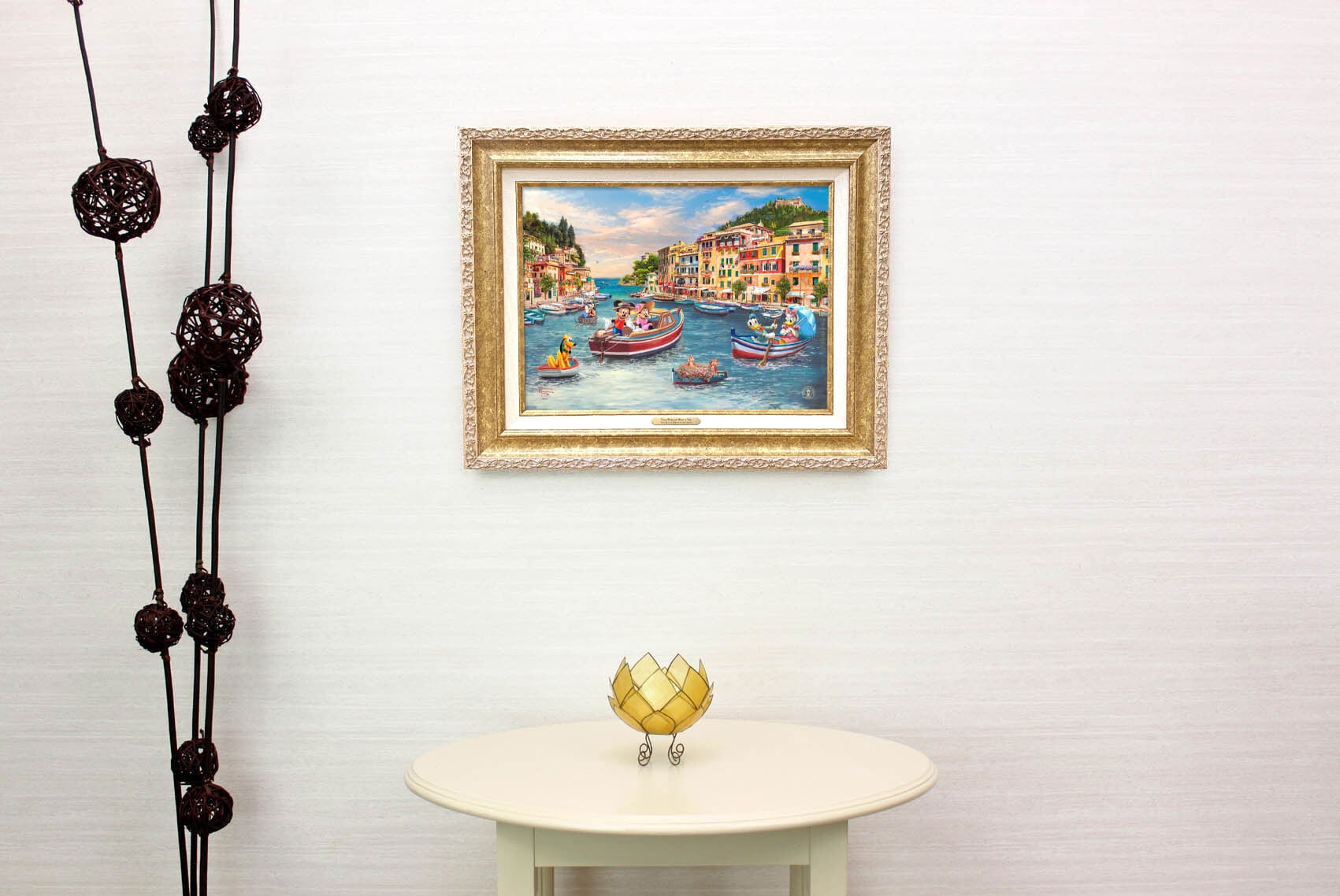 ディズニー絵画「ミッキー&ミニー/イン イタリア」作品証明書 展示用フック付キャンバスジークレ