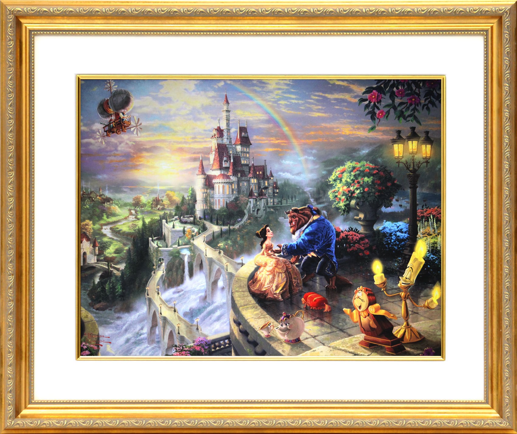 ディズニー絵画「美女と野獣/フォーリン ラブ」額縁2種選択可 作品証明書 展示用フック付アートプリントポスター【インテリア】【Disney】【絵画インテリア】