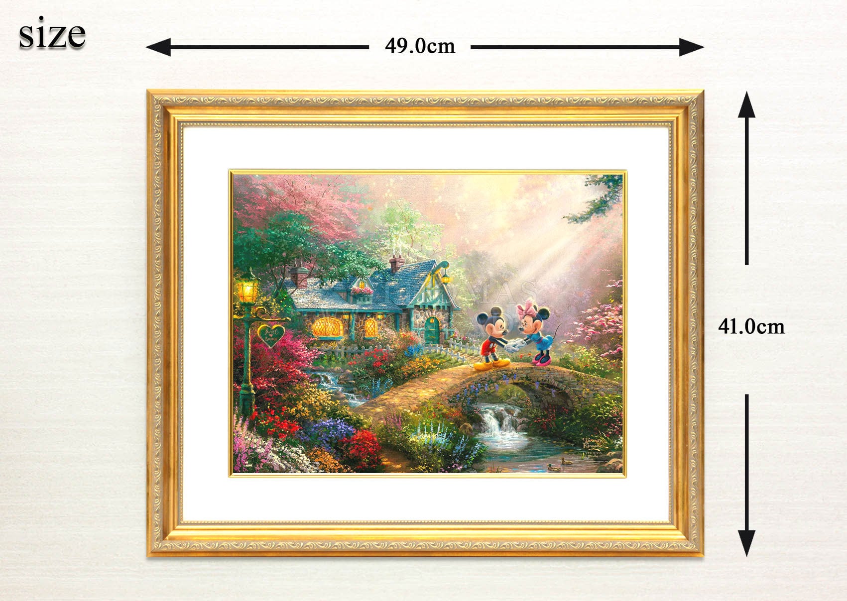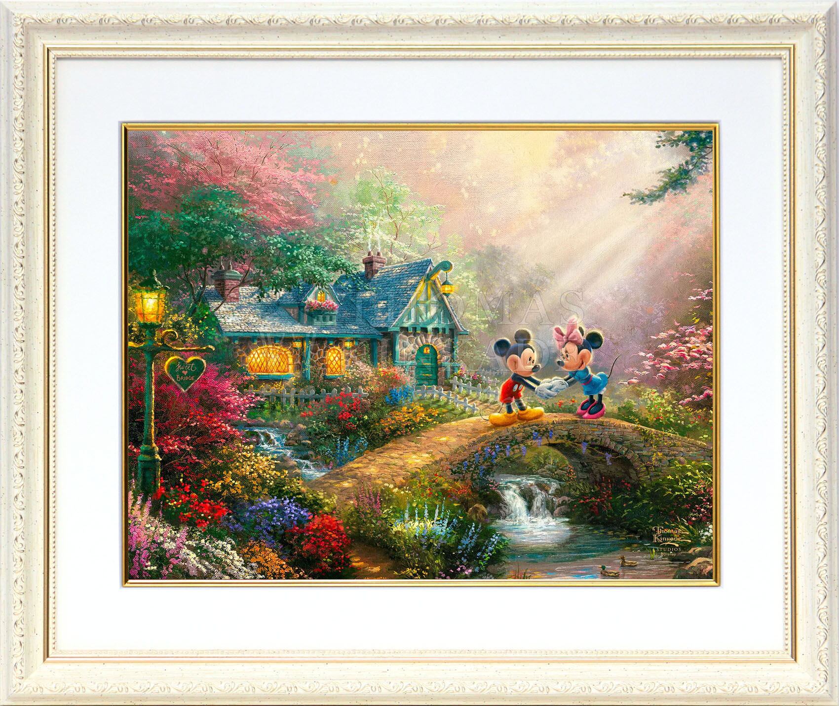 ディズニー絵画「ミッキー&ミニー/スウィートハート ブリッジ」額縁2種選択可 作品証明書 展示用フック付アートプリントポスター【インテリア】【Disney】【絵画インテリア】