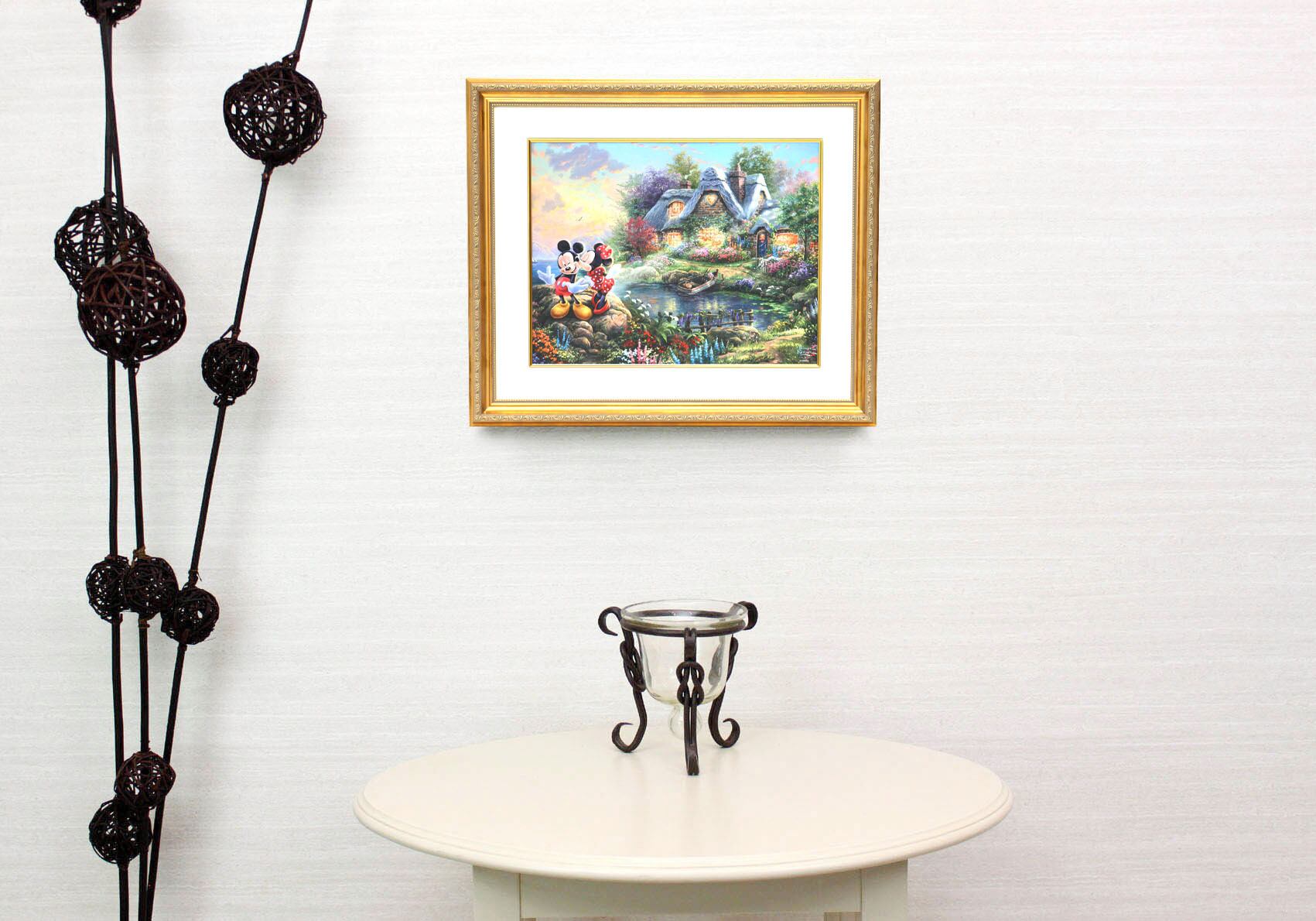 ディズニー絵画「ミッキー&ミニー/スウィートハート コーヴ」額縁2種選択可 作品証明書 展示用フック付アートプリントポスター【インテリア】【Disney】【絵画インテリア】