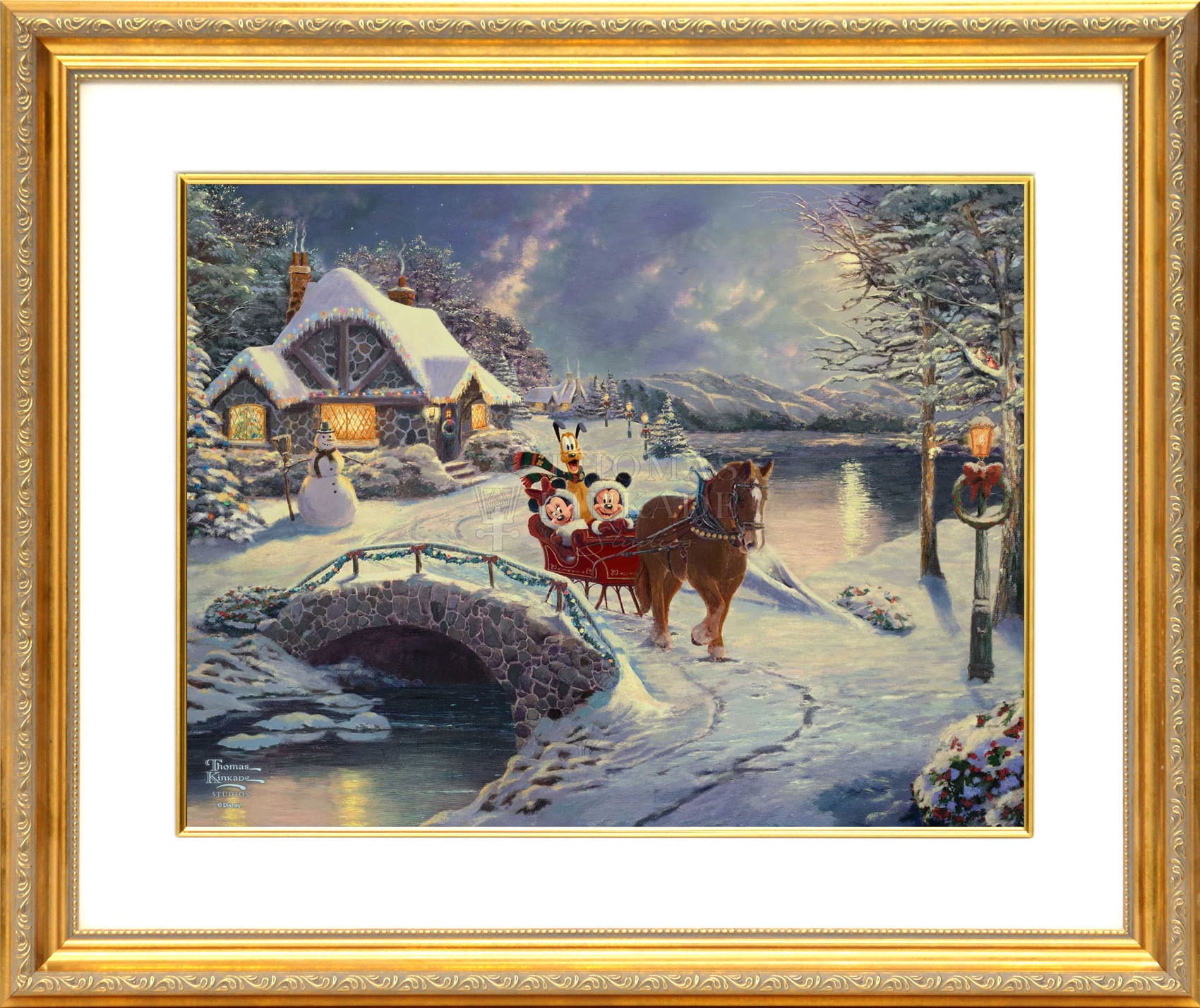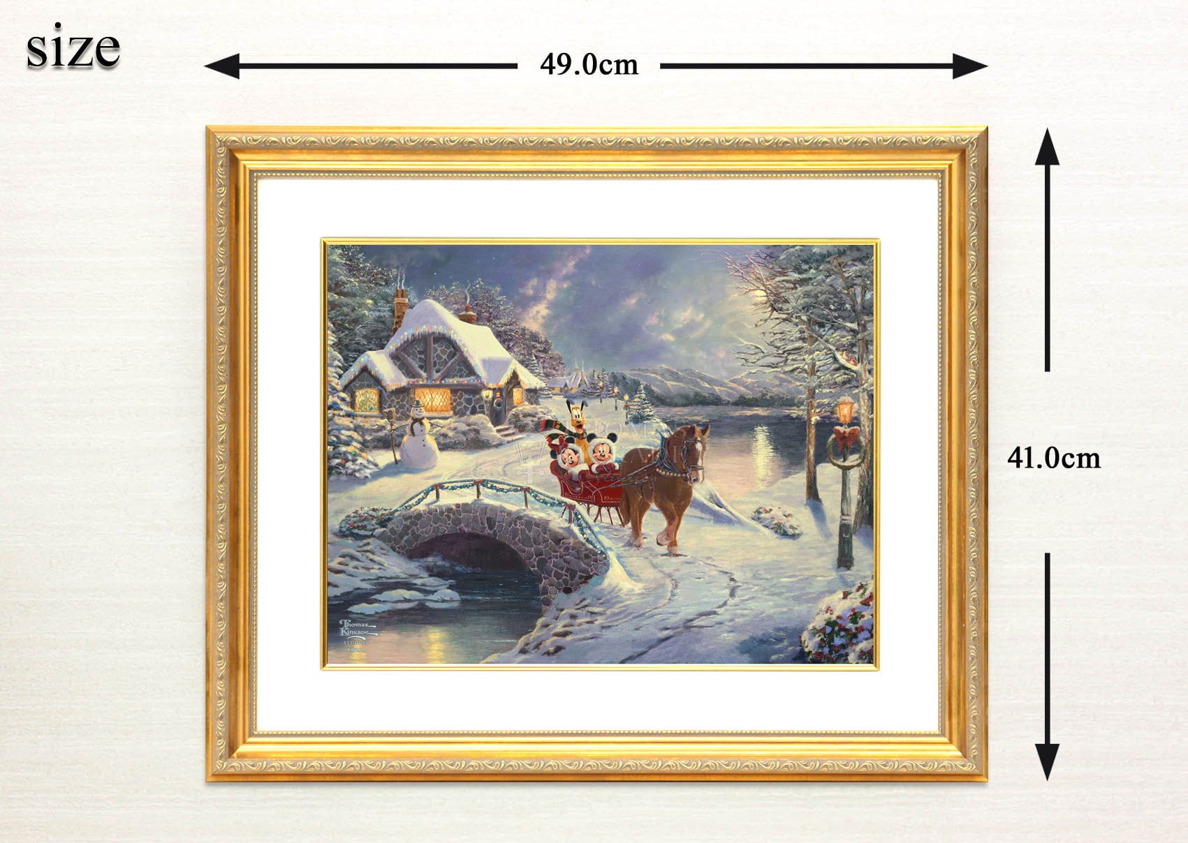 ディズニー絵画「ミッキー&ミニー/夜のそりすべり」額縁2種選択可 作品証明書 展示用フック付アートプリントポスター【インテリア】【Disney】【絵画インテリア】