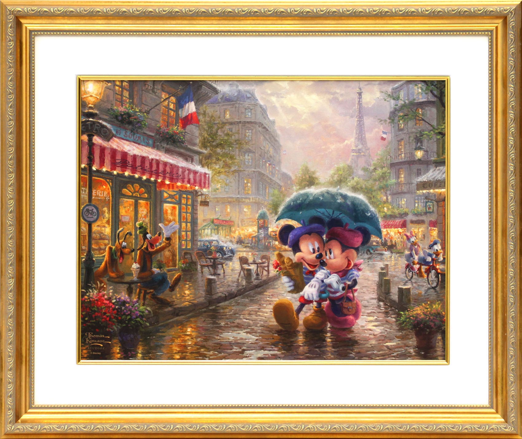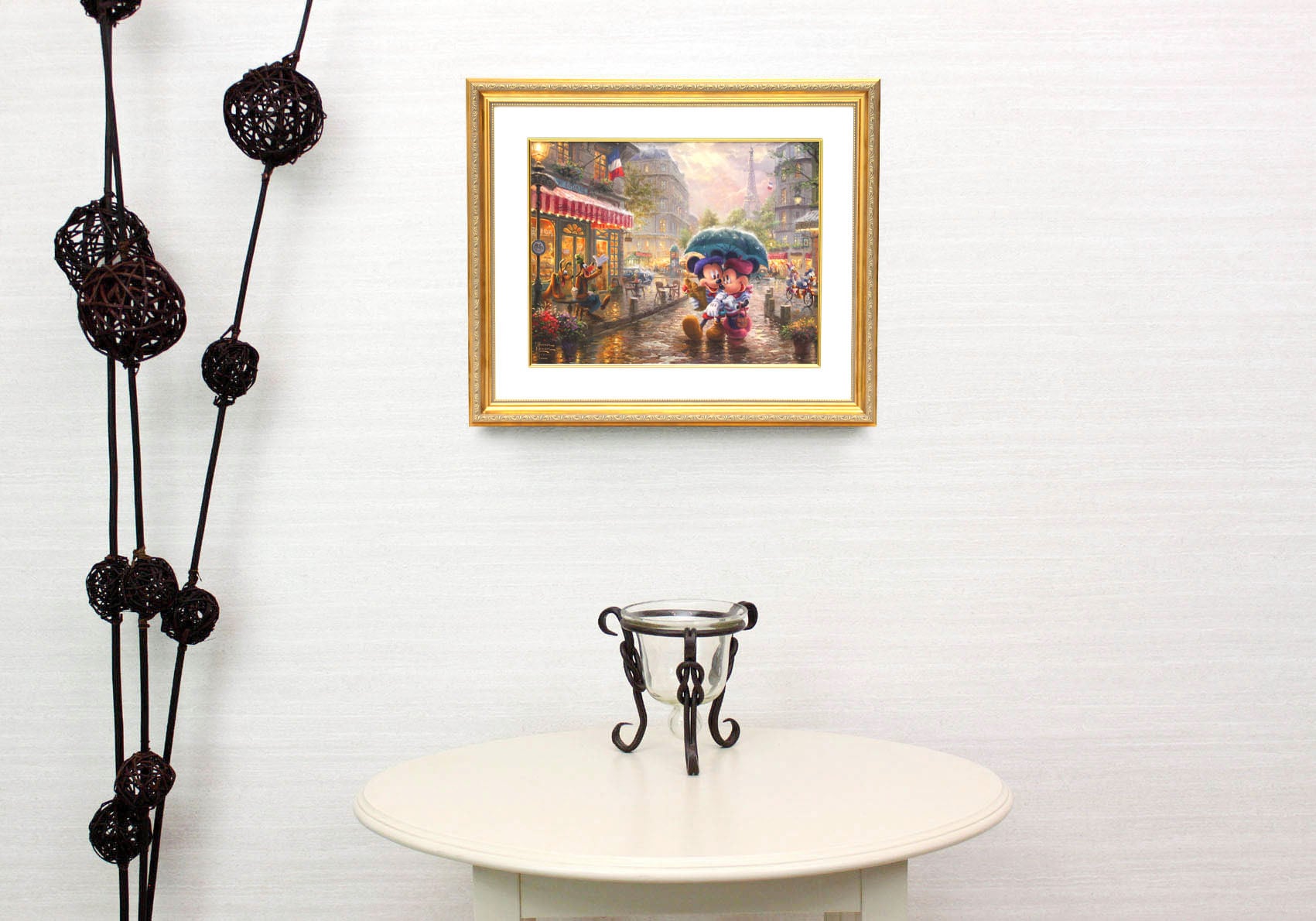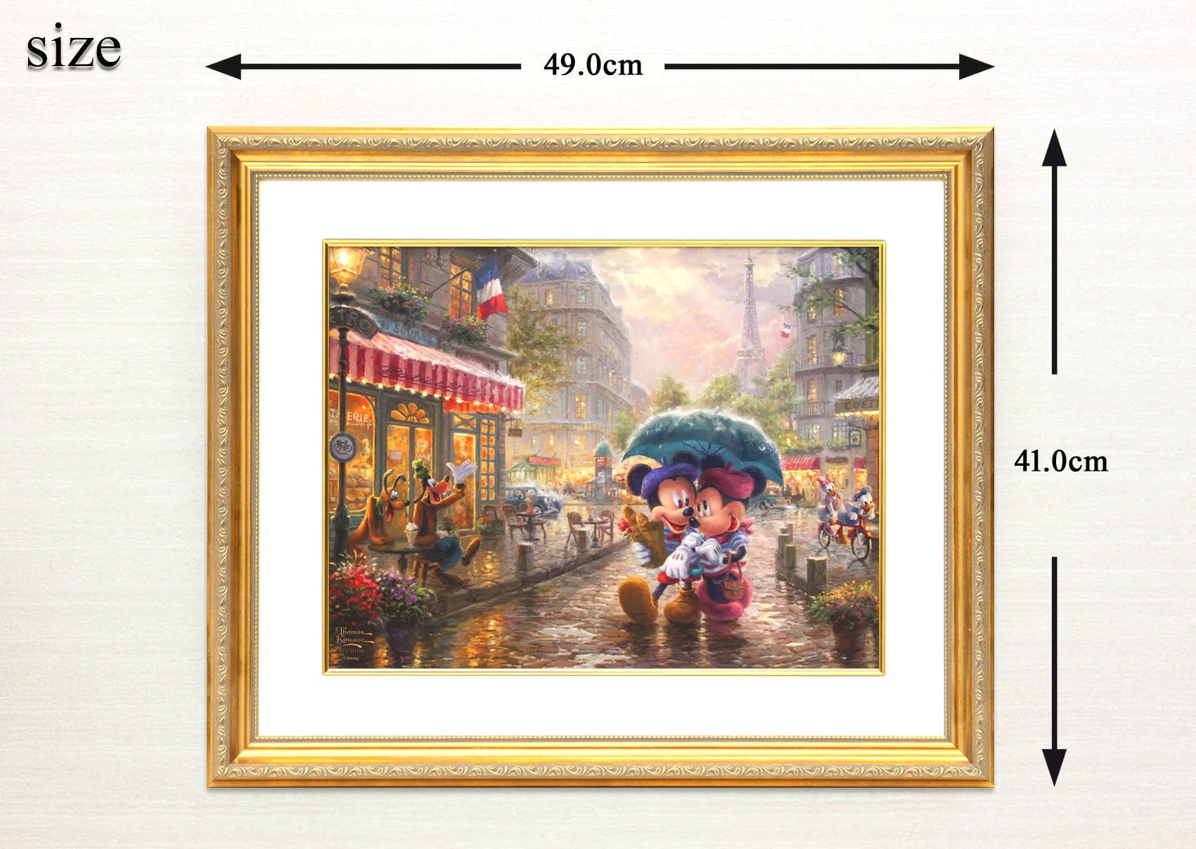 ディズニー絵画「ミッキー&ミニー/イン パリ」額縁2種選択可 作品証明書 展示用フック付アートプリントポスター【インテリア】【Disney】【絵画インテリア】