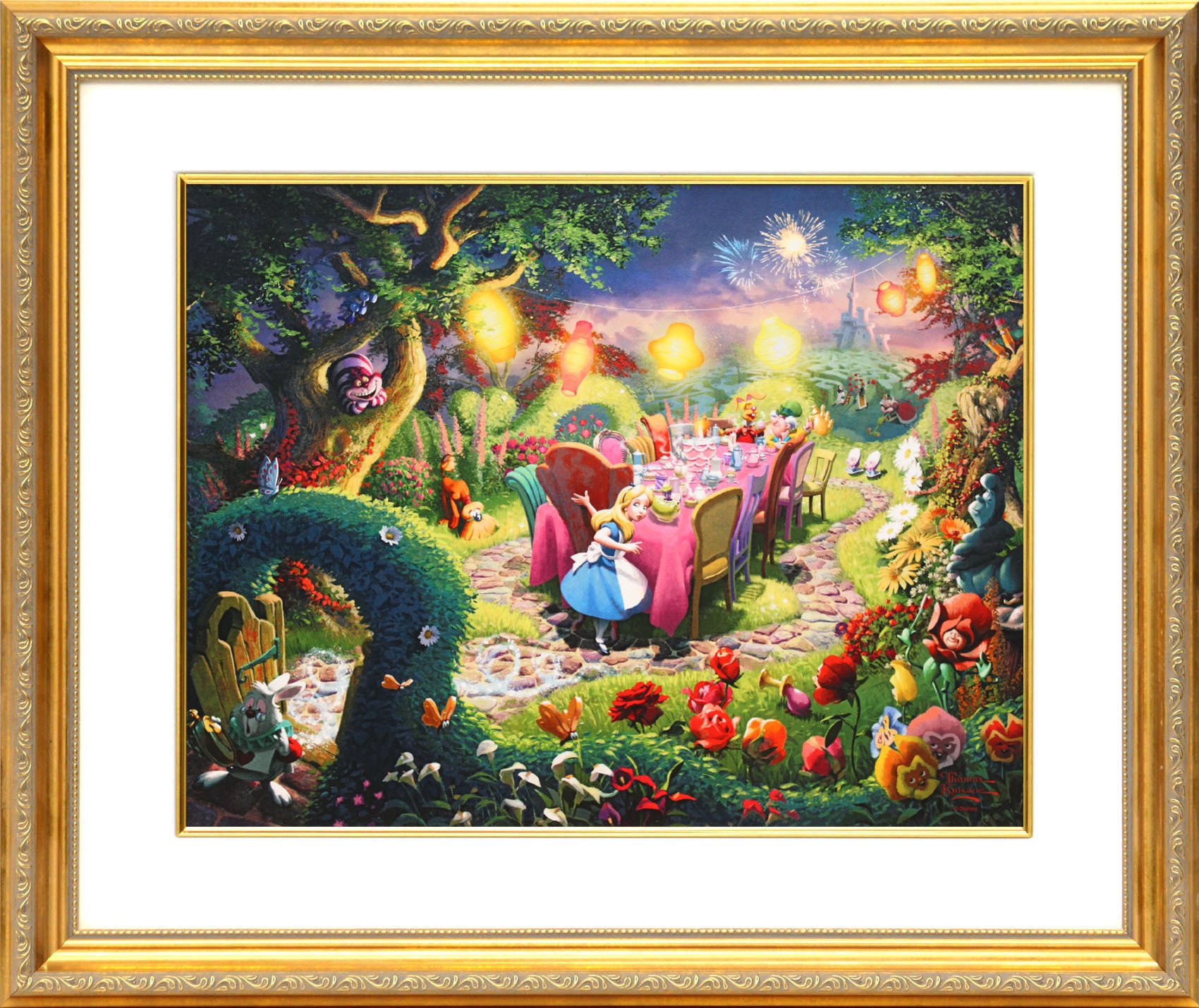 ディズニー絵画 トーマス キンケード 不思議の国のアリス/マッドハッターのティーパーティー ポスター 正規品 インテリア 展示用フック付 額縁2種選択可 アートプリント